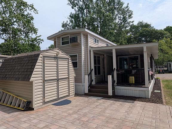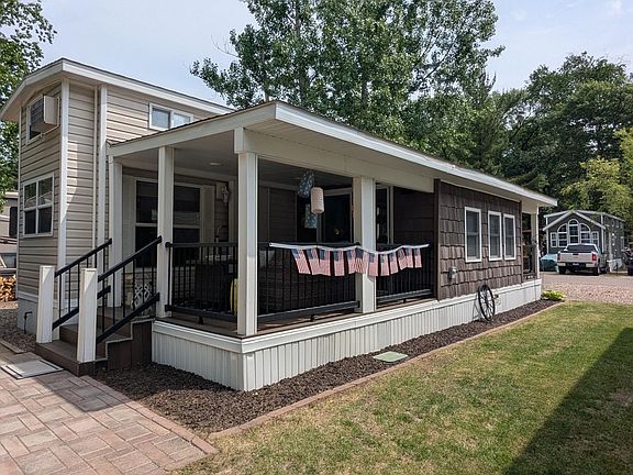 Located on the outer edge along the woods. Included with the lot: 2014 Breckenridge double loft park model, with 34’ x 10’ hard cover roof over the front porch trex deck, MN room, back trex deck all covered by. All railing and supports are trex material. 23’ x 20’ paver patio in back, 8’ x 10’ storage shed, 4’3” x 2’6” deck locker, massive retaining wall, rock lined parking area and rock lined landscaping. All items you see, interior and exterior furniture, decorations and both storage sheds
