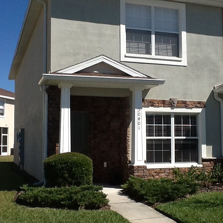 This Rare End Unit Townhome is located in the sought after gated communityof Hillhurst Crossing in the Meadow Pointe Community! This 2 Bedroom+Office/Den/2.5 Baths has a fantastic floor plan with an open concept downstairs. There is a large eat in kitchen that features lots of cabinets space and a center island, access to the pavered back patio with views of a pond, and an arched open design that overlooks the great room. Downstairs you also have a half bath and large laundry closet big enough for a full size washer and dryer. At the top of the stairs you have two master suites that offer their own private bathrooms and boast large closets. In between the bedrooms is an office/den that can also be used as a third bedroom. The benefits of maintenance free living with an HOA that includes a swimming pool, playground, fitness center, tennis courts, garbage removal, exterior maintenance including roof, and pest control. A great location at a great price in the heart of Wesley Chapel with easy access to I-75/275, USF, Wiregrass Mall, Hospitals, the new Premium Outlet Center, and restaurants.