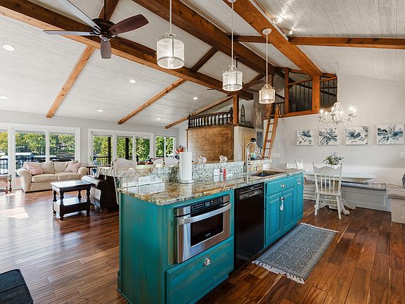 Perfect for lakefront living, a weekend retreat or VRBO! Beautifully remodeled and fully furnished waterfront home on Monkey Island, with open concept living & dining room, 3 bedrooms, loft, 2 full baths and 2 half baths. Features a walk out finished basement serves as laundry/guest room/private bath. New partially covered Trex deck ( Oct. 2025). The 25' x 30' detached garage has two overhead doors & H/A. Enjoy a 2-slip boat dock, with Wet Steps/one is an enclosed fishing slip ( all new decking Oct. 2025) Other amenities include fenced yard/entry gate, bug misting system and an outdoor shower on lower patio. Outdoor grill & sink to be installed on deck.