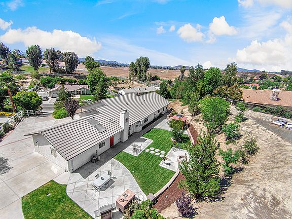Century 21 Masters agents, Karen and Todd Myatt (951-326-5000) sold@myattrealestate.com, are available to show you this home or answer any questions. An amazing single story view home in Meadowview! Long secluded driveway gives you privacy as the property is high above the treeline of other homes. Front porch allows for relaxing times with 180% views of the meadow and hills. This easy living plan is open to all entertainment areas. Enjoy cooking in the gorgeous kitchen which is light and bright w maple cabinets and custom tile counters. All bedrooms have view from this single story home w/ 4 bedrooms & 3 bathrooms. Entertain with this super sized family room that leads to the outdoor Fire pit and BBQ area. Master suite is accented with french doors leading to spacious retreat. Three car garage. Large 26 foot out building w/ plenty of parking for work trucks and storage. Special viewing plateau at the top of the property. So much land around for many possibilities ... there is open space for everything. Meadowview offers a low tax rate, low HOA that includes association pools, tennis courts, basketball courts, trails, and equestrian center. Best location in Temecula w/ easy access to the Temecula Mall, wineries, restaurants, and award winning schools.
