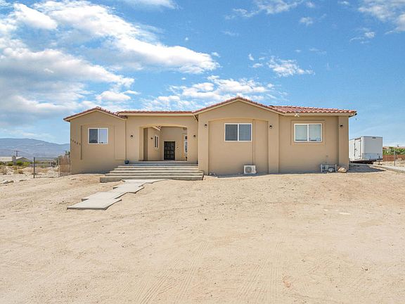 Welcome to beautiful Thousand Palms, centrally located in the Coachella Valley, only a few minutes from the airport, music festivals, Acrisure Arena, and so much more. This home was built with absolute quality throughout. 4 bedrooms 2 bathrooms with an open floor plan, high ceilings and very spacious throughout. Big courtyard in the front entrance, and nice long patio in the backyard, this property has all the makings of a true Desert getaway home. Beautiful neighborhood to raise your family yet quiet and serene enough to refresh, reenergize, and refocus. RV PARKING is an understatement here with plenty of room and actual electric hookup for your rigs to power up. Spacious 2 car garage with a workshop style setup. All Appliances included, tool shed included, and central air that is only 2 years old. Elevation certificate is provided so no need for flood insurance. VA ASSUMABLE LOAN also available on this file. Schedule your appointments and let's get you moving!!