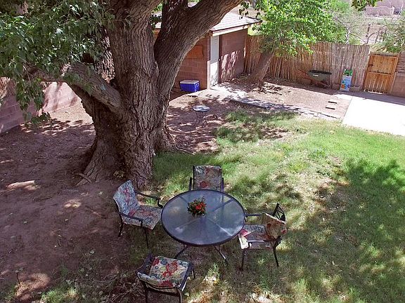 This is the magical South Valley property you have been waiting for! A cute, clean, house with a very private feel, nestled in your own little forest! There is a huge cotton wood in the backyard, It's fantastic! The house has some very good updates including new kitchen counters, sink, fixture, hood, and backsplash as well as refrigerated air and central heat! A very nice floorplan with some good versatility! 3 real bedrooms & another space that could be anything from a bedroom to an office or a creative space, which opens onto the BIG backyard. All appliances convey which is a nice bonus! In the back there is an outbuilding that offers additional options for use. The back half of the lot could be an amazing garden or room for animals. Very close to services along Coors/Rio Bravo/Isleta.
