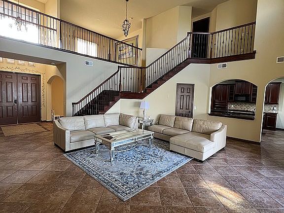 Second floor provides 4 spacious bed rooms, 2 full bathrooms. One large second floor entertainment room with a wet bar, hard wood wall cabinets, granite counter tops, hooks for wine cooler. Spacious second floor loft with double arched doors overlook julia balcony and front yard. Cast iron stair rails all around overlook two story grand living room.