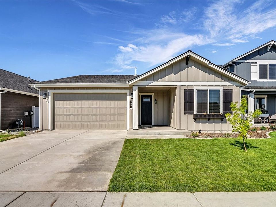 This stunning newly constructed 3-bedroom, 2-bathroom home offers 1,865 square feet of modern living space designed for comfort and style. The open floor plan features soaring vaulted ceilings, creating an airy and spacious atmosphere perfect for both relaxing and entertaining. The chef-inspired kitchen is equipped with sleek finishes and flows seamlessly into the dining and living areas. Each bedroom is generously sized, while the primary suite boasts a luxurious en-suite bathroom for added privacy. An attached garage provides convenience and extra storage, while the fully fenced grass backyard is ideal for outdoor activities, pets, or simply unwinding. This home combines contemporary design with functional features, making it a perfect retreat for any lifestyle. Echelon Village offers an exceptional lifestyle with modern features, including Frigidaire appliances, a full-size washer and dryer, soaring nine-foot ceilings, and centralized air and heating. With all landscaping and maintenance taken care of, you'll have more time to focus on what truly matters.