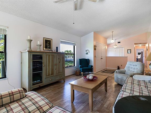Welcome to your dream home in Admiralty Village at a Great New Price, located within the sought-after Burnt Store Marina community. This beautifully furnished, turnkey 2-bedroom, 2-bath condo spans 1,400 sq ft and offers a serene private garden view from the lanai, perfect for relaxation. The three-season back porch is a cozy yet versatile space designed to let you enjoy the outdoors while staying protected from the elements. The ceiling features a skylight, flooding the area with natural light during the day, creating a bright and inviting atmosphere. A ceiling fan with an integrated light fixture hangs above, providing a gentle breeze and soft lighting for evenings spent on the porch. Wrap-around windows are the key feature of this porch, offering panoramic views of the surrounding landscape. These windows can be easily opened to let in a refreshing breeze on warm days, filling the space with the sounds and scents of nature. When the weather is less favorable, the windows can be closed, allowing you to stay comfortable and dry while still feeling connected to the outdoors. This porch is perfect for sipping morning coffee, reading a book, or entertaining guests. Its design makes it a cozy retreat that can be enjoyed almost year-round, providing a seamless blend of indoor comfort and outdoor charm. This end unit boasts several recent upgrades, including a new air conditioning system installed in August 2024, a new roof in 2023 ensuring a well-maintained living space. Centrally located and close to the association pool, this condo provides convenient access to all the amenities in Burnt Store Marina. As a resident, you'll enjoy one of the largest marinas on Florida's Gulf Coast, featuring 525 wet slips and over 450 dry storage spaces. The community also includes a 27-hole golf course, tennis and pickleball courts, a fitness center, and a waterfront restaurant. Enjoy the picturesque walking and biking paths, social clubs, and a variety of planned activities that cater to all interests. Don't miss the opportunity to own this exceptional property in a prime location, priced to sell, offering both comfort and an active lifestyle.
