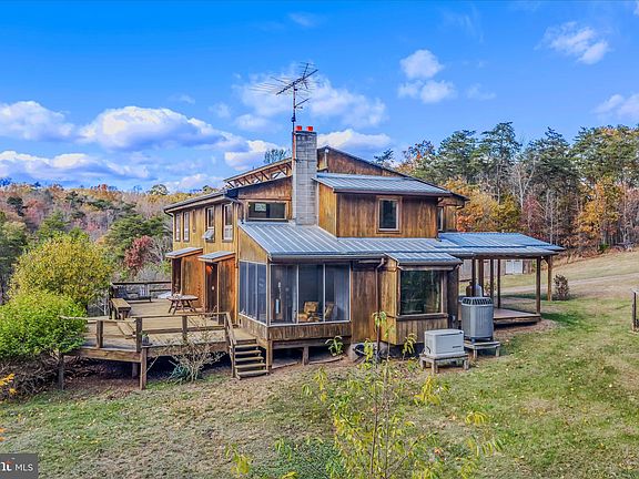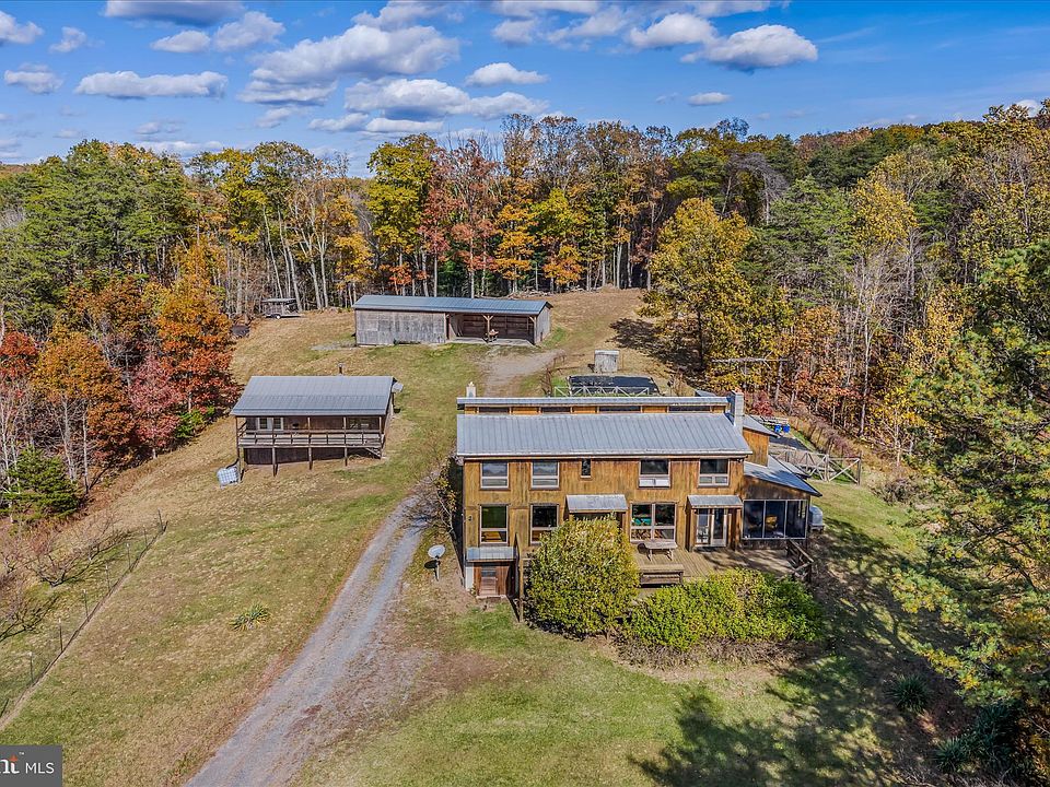 Artist Retreat & Mixed-Use Sanctuary on 32.13 Unrestricted Acres — Berkeley Springs, WV Welcome to the center of the universe — where the stars align in the rural countryside of Berkeley Springs! This one-of-a-kind property blends naturalist living with industrial artistry on 32.13 acres of unrestricted solitude. Designed for creativity, sustainability, and self-sufficiency, it offers multiple buildings and limitless potential for live/work uses, workshops, studios, or retreats. The rustic contemporary passive solar home features: A dramatic wall of south-facing windows capturing natural light, Custom-crafted thick pine floors milled locally, Solid oak framing and soaring ceilings with open lofts for additional sleeping or studio space, Vermont Castings stove with stone surround, Central heat & air installed in 2012, Kitchen with an additional antique cookstove, Multiple decks and porches — including a screened porch designed to support a hot tub, Whole-house generator for peace of mind, Full improved unfinished basement — spacious enough to house large-scale projects. The pole barn/run-in shed offers flexible workshop with water and electric or storage space for every creative endeavor. The office/studio or guest quarters includes a full covered porch, water, electric, and a wood stove — ready to be completed to your vision, storage below is big enough for tractors. Nestled among the trees, the chapel provides a serene haven for meditation, yoga, or reflection. A little further into the property, the hunting shack offers opportunities for wildlife observation or sport, with drop-down windows for watching, photographing, or hunting. The acreage is thoughtfully developed with walking trails, fruit trees-4 peach, 1 cherry, 1apple- gardens, rain barrels, and kindling boxes for practical off-grid living. There’s even room for chickens! Whether you’re seeking a private creative sanctuary, a sustainable homestead, or a multi-purpose live/work retreat, this property offers endless inspiration — your quiet refuge and shelter from the storm. NOTE NUMBER OF BEDROOM SPACES COUNTED WITH BUILDINGS IN MIND-MAIN HOUSE HAS 2 CURRENT POSSIBLE BEDROOMS WITH SPACE FOR MORE. 5 buildings in total and a few small sheds. Stove/flu cleaned in spring 2025, PROFESSIONAL PHOTOS TO FOLLOW