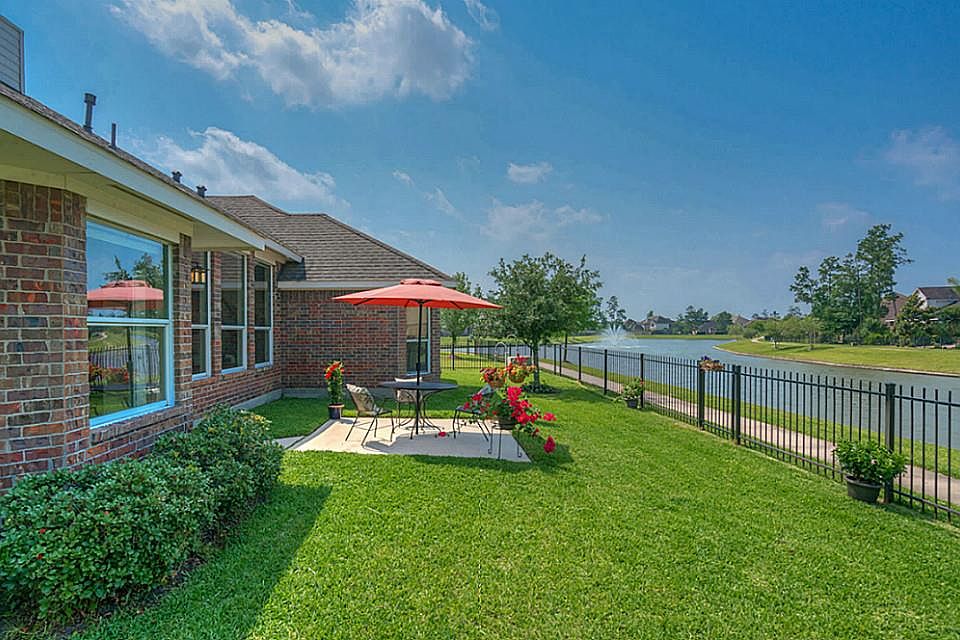 One story w/ a THREE car garage in gated community on the water at this price??? Better hurry! The cute front porch welcomes you in & the surprises begin! Gorgeous designer updates including lighting, New carpet, & Fresh paint! Stunning views from the wall of windows overlooking the fountain and water right out your back door! Fantastic open kitchen w/ granite counters, island, & SS appliances. Master Retreat w/ soaring ceilings, massive closet & a gorgeous bathroom! Gated & Easy TX99 Access!