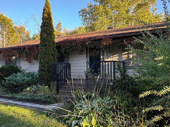 Beautiful and spacious bungalow on 2.3 acres of landscaped, park-like property. The main floor features a spacious primary bedroom with french doors leading to rear yard, a generous second bedroom with its own two-piece ensuite a 3 room suitable for a bedroom (currently used as a den) The bright, open-concept kitchen, dining room, and sunroom create an inviting space for cooking and gathering, while the large living room with double glass doors leads to an expansive deck.The fully finished basement offers a separate entrance, a family room, and a dedicated workout area-perfect for hobbies, guests, or extended living. Outside, enjoy a 24-foot above-ground pool, a charming canopy lounge area with a propane fire table, and plenty of room to relax or entertain. A detached two-car garage adds convenience and extra storage.This beautifully maintained property offers privacy, space, and exceptional indoor-outdoor living-an ideal retreat just minutes from town. The heating system is an economical heat source pump with electric back up and A/C for those hot summer days. All systems have been well maintained over the years. Book a viewing today. Open House rescheduled to SUNDAY NOV 16th from 2-4pm.