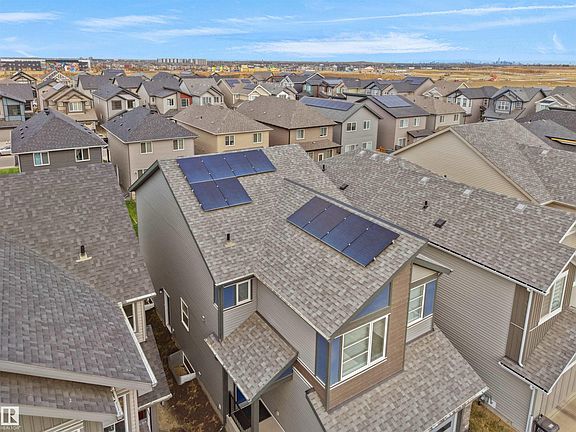 Welcome to this stunning 2024- built home featuring 4 spacious bedrooms and 3 full bathrooms in the highly sought-after Desrochers community. Designed with elegance and functionality in mind. This home offers a grand open-to-below living area that fills the space with natural light. Enjoy a modern kitchen with quality finishes. The side entrance to the basement offers excellent potential for future development or income suite possibilities. If you are environmentally conscious you'll love the built-in solar panels, helping reduce utility costs with a double attached garage. This home blends comfort, style and sustainability, and all amenities-move in ready and waiting for you!