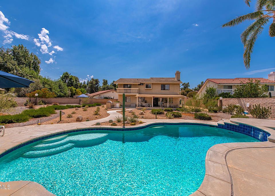 Welcome home! Beautiful 4-bedroom, 3-bath home perfectly situated in one of Simi Valley's most sought-after neighborhoods. Ideally located near Rancho Tapo Community Park, Simi Valley Library, Boys & Girls Club, farmers market, & more, this property offers both convenience and lifestyle.Set on an expansive 15,246 sq. ft. lot, the home features a resort-style backyard complete with a sparkling pool & spa, covered patio, built-in barbecue, and plenty of open space for entertaining. There's also gated RV parking and drought-tolerant landscaping for easy maintenance.The versatile floorplan includes a downstairs bedroom and 3/4 bath, ideal for guests, a home office, or multigenerational living. Upstairs, you'll find 3 additional spacious bedrooms, including the primary suite with a private balcony, walk-in closet, dual vanity, soaking tub, and separate shower.At the heart of the home is a chef's kitchen with a six-burner stove, walk-in pantry, expansive granite countertops with large eating bar, and abundant cabinet space. The kitchen flows seamlessly into the family room with an upgraded fireplace, creating the perfect gathering space. Formal living and dining rooms offer even more flexibility for entertaining.Additional highlights include an indoor laundry room and a 2.5-car garage with convenient 3-door entry. This is the perfect blend of comfort, function, and resort-style living. Don't miss the chance to call it yours!