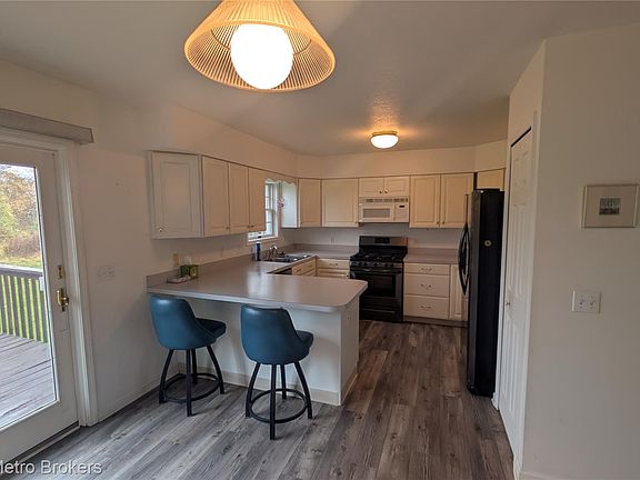 This well-maintained 3-bedroom, 2-bath ranch offers convenient main-floor living and a thoughtful layout with a spacious living room that opens to the kitchen and dining area—ideal for everyday comfort and entertaining. The kitchen includes a refrigerator, oven, dishwasher, and microwave, along with plenty of functional cabinet and counter space. The primary bedroom features its own private bathroom, while durable vinyl flooring runs throughout the main level for easy upkeep. A full, unfinished basement provides excellent storage or potential for future finishing. Set on nearly 2 acres with an attached 2-car garage, this property offers room to enjoy the outdoors along with the convenience of nearby shopping, dining, and highway access. Move-in ready and cared for throughout, this home is a great opportunity to enjoy comfortable living with room to grow.