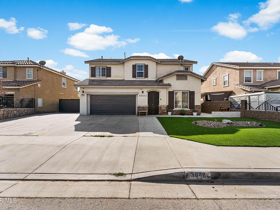 Beautifully Updated Lancaster Home! Discover this modern two-story home offering over 2,400 sq. ft. of living space in a great Lancaster neighborhood. The first level features rich hardwood floors, a cozy living room with a fireplace, and a stylish kitchen with quartz countertops, contemporary cabinetry, and a spacious breakfast island—perfect for gathering. Upstairs, you'll find all four bedrooms, including a bright and airy primary suite with a roomy ensuite bath. The additional bedrooms provide versatility for a home office, gym, or playroom. Outside, enjoy a large backyard with a covered patio and ample room for a pool or outdoor entertaining year-round. A generous side yard provides convenient RV parking. Don't miss this move-in-ready home—schedule your private showing today!