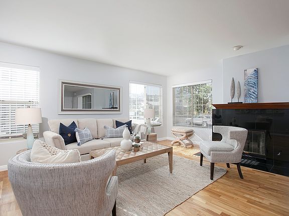 The perfect place to call "home". Light & bright one-level condo with hardwood floors, freshly painted interior, updated bathrooms including the spacious MBR bath with over-sized shower, beautiful commode and large closet. Cozy up around the gas fireplace on those chilly winter evenings. Built-in entertainment center for fun times with family and friends. Full size washer/dryer and BBQ all convey. Bonus...parking for 2+ cars "just for you". Fabulous location! Walk to restaurants, beaches, SD Yacht Club.