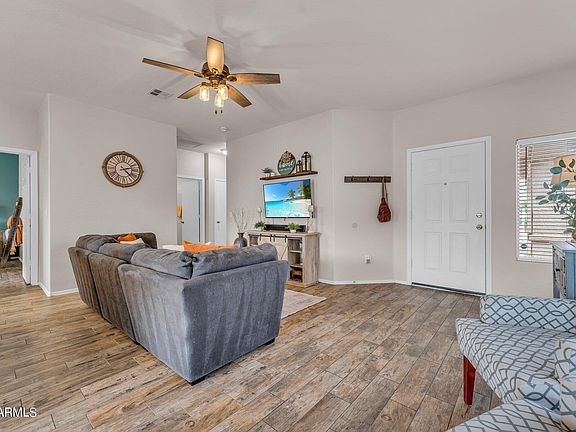 This charming open concept home features a newly updated kitchen with quartz countertops and abundant natural light! A split floorplan creates a sense of privacy all while offering ample space for gatherings. The backyard features a cozy covered patio as well as newly installed turf. Stay cool and comfortable with the new A/C installed in August 2023.