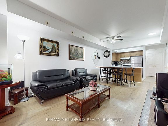 Fabulous Corner-End Unit on a Corner Lot in Harmony Village! *Bright, well-maintained 2-bedroom, 1-bath unit with 773 sq. ft. of functional living space *Modern open-concept layout with plenty of natural light *Freshly painted with new laminate floors and quartz countertop *Ensuite laundry for added convenience * Open terraces at front and back plus a private balcony for relaxing or entertaining * Includes parking and locker for extra value and storage *Prime location near 24-hour TTC, upcoming Finch West LRT (2025), Costco, schools, parks, Humber River trails, and everyday amenities nearby. Come and see!