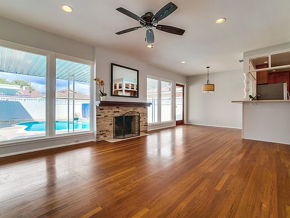 Classic Plaza pool home. 3 Bed 1. Baths, Hardwood floors, Freshly painted interior, fireplace, open floor plan, Living room with fireplace and floor to ceiling windows with view of pool and spa. Covered patio, great for entertaining. Kitchen offers plenty of storage. Separate laundry room, Gated driveway and two car garage. Solar Panels and new front lawn and sprinkler system.
