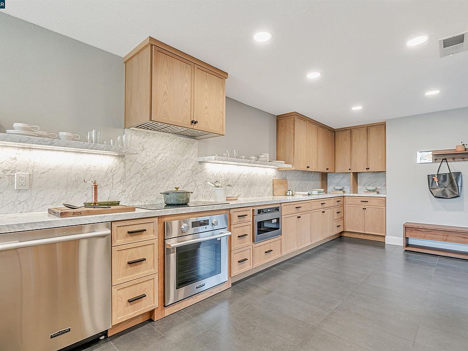 Located in the prestigious gated community of Canyon Lakes, this meticulously updated home features 3 spacious bedrooms, 2.5 bathrooms, and a versatile den. The gourmet kitchen is a chef's dream, boasting Rift Sawn White Oak cabinetry, SKS built-in refrigerator, SKS Wine Column, SKS induction cooktop, and premium finishes throughout. Enjoy your private, low-maintenance backyard perfect for entertaining or relaxing. The community offers resort-style amenities including 4 sparkling pools, spa, tennis, pickleball, basketball courts, plus scenic walking trails and 24/7 gated security. Conveniently located near City Center, Blackhawk Plaza, top-rated SRVUSD schools, and with easy freeway access.