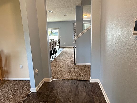 This beautiful home, built in 2021, is located in the sprawling and desirable neighborhood of Cross Creek. Located in a cul-de-sac and situated on a large 0.3 acre lot features a fully fenced in back yard with a front and rear gate, a 17' x 26' patio slab for leisure or entertaining, two car garage, and a front porch for watching sunsets. Interior to the home, the first floor is a mix of laminate and carpet with a large front room, large kitchen with tile backsplash, walk-in pantry, full bathroom, living room, and a 5th bedroom. Carpeted stairs lead to carpeting in three bedrooms and a loft overlooking the backyard. A bathroom and two linen closets are also part of the second story. The Owner's suite, the fourth bedroom on this floor, showcases a large amount of space and the attached bathroom features a double sink, oversize shower, walk-in closet, an additional linen closet, and overlooks the front yard/cul-de-sac area. Washer and dryer hookups located on the second floor.