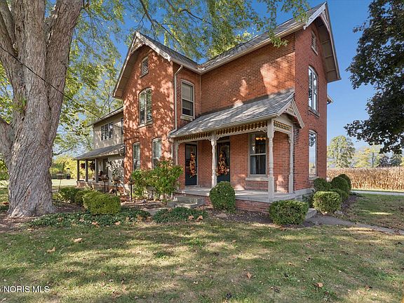 Beautifully updated & well-maintained, this historic 5-6 bedroom, 3 full bath brick farmhouse is full of character & charm. Situated on apicturesque 2.25-acre lot featuring timber frame barn with stalls, blacksmith shop & garden shed. Baker's kitchen with granite countertops,S/S appliances, walk-in pantry & wet bar. First floor includes a bedroom & full bath, offering flexibility. Restored hardwood floors, functional& decorative fireplaces, abundant closet space, attached garage & updates throughout. 2025 upgrades include new furnace & rebuilt chimney. Country living close to everything. Absolutely amazing sunsets!!! There are 3 wells on the property as well as city water for the house.