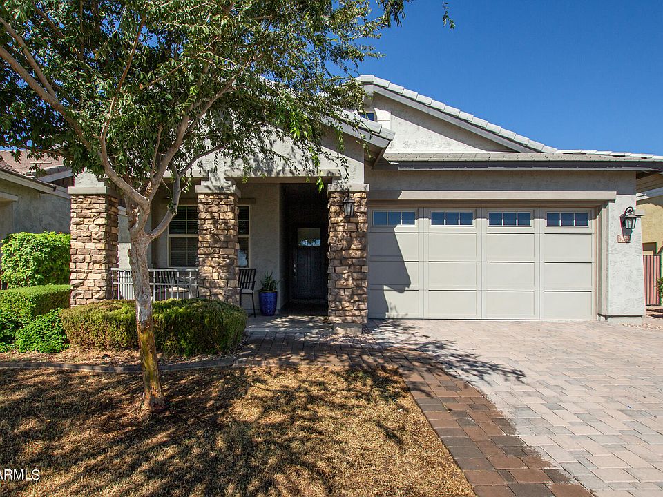 PRICE REDUCTION. Beautiful home in the heart of the coveted Morrison Ranch community! This remarkable home offers lush landscape, a cozy front patio, a 3-car garage with epoxy flooring and paver driveway. The home's captivating interior boasts a bright and airy open floor plan with a cool and stylish grey color palette, beautiful natural wood plank tile, stylish light fixtures, and abundant natural light. Elegant gourmet kitchen features shaker cabinets with crown molding, sleek stainless-steel appliances, granite counters, custom tile backsplash, walk-in pantry, and an island with a breakfast bar. The home has a 3-way split floor plan. The primary suite features an in-suite bath Stunning backyard has cozy covered patio, extended pavers for additional seating.