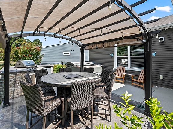 Welcome to 3044 Ellesmere Circle, a beautifully upgraded single-level home in the sought-after Berkshire Forest community of Myrtle Beach. Offering 3 bedrooms and 2 bathrooms, this home blends style, function, and comfort in one of the area’s most desirable neighborhoods. Inside, you’ll find a bright open floor plan with upgraded lighting, neutral tones, and luxury vinyl plank flooring. The gourmet kitchen is designed for both cooking and entertaining, featuring granite countertops, stainless steel appliances, a subway tile backsplash, and a spacious island. The primary suite is a relaxing retreat with a tray ceiling, walk-in closet, and spa-like ensuite bath with dual marble vanities and a walk-in shower. Additional highlights include marble countertops in both bathrooms, updated fixtures, attic flooring for added storage, new door hardware, and a finished garage with epoxy flooring and its own split-unit HVAC system. The outdoor space is a true highlight. Enjoy a custom kitchen complete with a stone-accented Napoleon grill, refrigerator, and prep area under a stylish pergola. Relax in the Hot Springs hot tub, unwind in the screened lanai, or host gatherings on the extended stamped-concrete patio. The backyard is fully fenced and professionally landscaped with palm trees, decorative rock, and landscape lighting, offering both privacy and charm. Additional practical features include hurricane shutters, gutters, a gated garbage enclosure, and a whole-home surge protector. Living in Berkshire Forest means access to incredible resort-style amenities, including a large pool with cabanas, a clubhouse with fitness center and gathering spaces, tennis and pickleball courts, walking and biking trails, and a 32-acre private lake with sandy beach access. Ideally located just minutes from shopping, dining, golf, and the beach, this home provides the perfect combination of convenience, comfort, and community living.