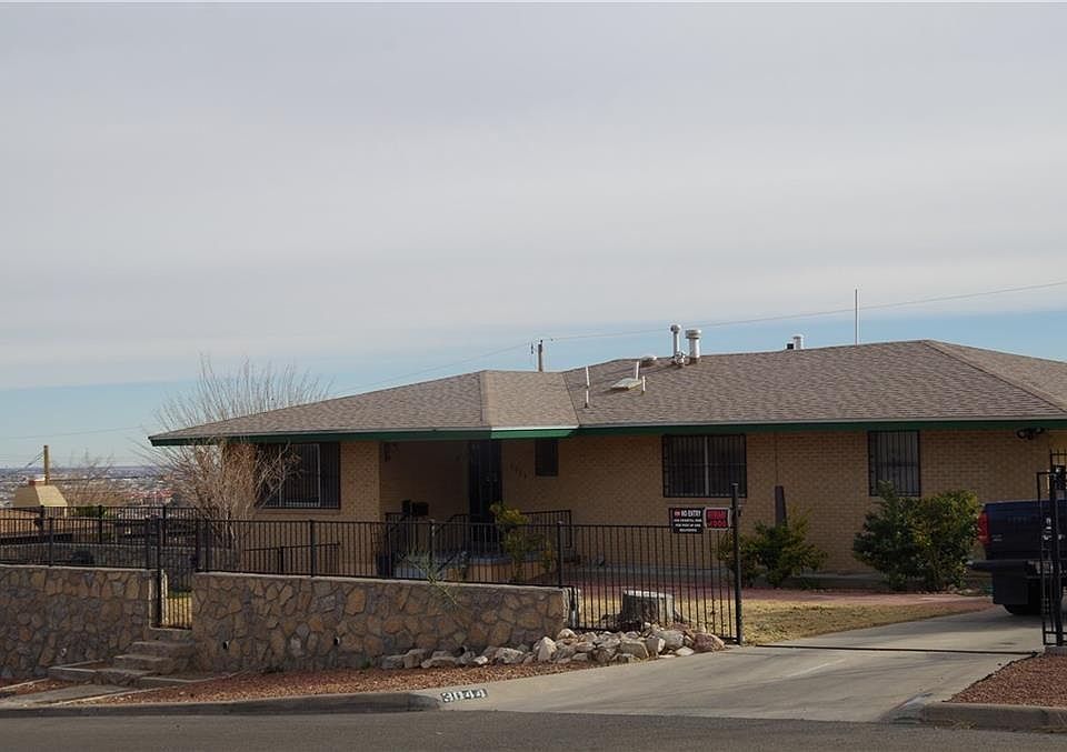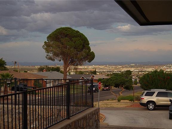 Centrally located near Ft Bliss and Beaumont AMC. Beautiful and spacious 6 bedroom brick home on a 12,000 SF corner lot with guest house. Nestled close to Franklin Mountains. Spacious master suite with walk in closets. Large living/dining area with adjacent Den. Den has large cornered windows with southern and easterly views. Den has a brick fireplace. Large cooks kitchen with lots of storage. Huge game room perfect for entertaining. Office with built shelving. Beautiful scenic views from living room, den, and kitchen. Lots of closet space through out home. Large backyard with pergola, scenic overlook. 2 driveways (RV Parking), 12'X30' outside storage. Separate Handicapped access guest house with kitchen, bath washer/dryer hookup + walk in closet. Layout allows for privacy. This is truly a must see for buyers looking for ample space and storage. Each floor features its own refrigerated air unit. Easy access to US 54 and to I-10. Motivated Seller, Call today!