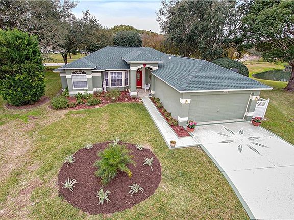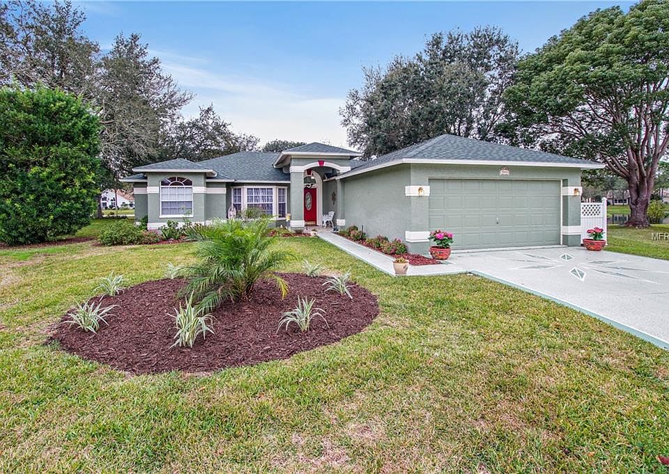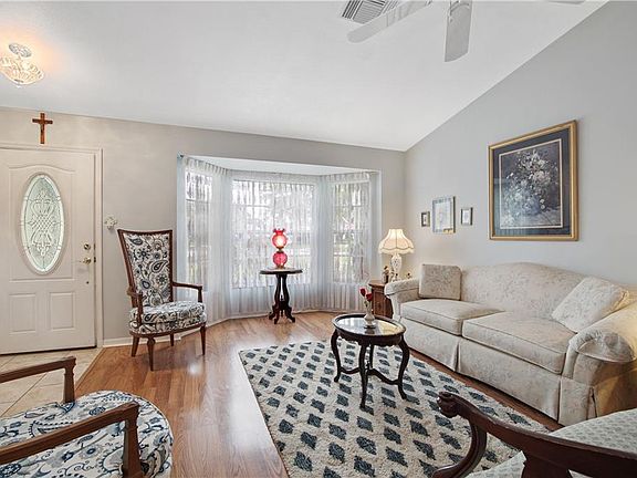 Welcome to this spacious and updated home with much to offer to its new owner. The custom painted driveway leads you up to this beautifully maintained 3/2 split plan with a lovely flow. Vaulted ceilings, living room/dining room combo provides an open feel. The beautifully updated kitchen has plenty of counter space and cabinets with bonus storage in a large, walk-in pantry. Enjoy breakfast in the nook surrounded by windows. The Florida room is bright, cheerful and great place for entertaining. Generous master suite with double walk-in closets. The ensuite includes dual sinks, garden tub, separate shower. Laundry room includes the washer, dryer and utility sink and cabinets. The garage is oversized and has a golf cart entrance on the west side with its own parking pad. This Award Winning Gated 55+ Community offers plenty of activities to enjoy from walking or riding your bike on the paths, a choice of three 18 hole golf courses, plus one executive course. The club house offers a beautiful restaurant and bar. So call today to schedule your private showing. (The pictures in the MLS show the following items that DO NOT CONVEY with property, Chandelier in Foyer, Formal Dinning Room and the Tiffany Chandelier in Nook Area. These items will be removed and replaced with new lighting by the seller.) Agent related to seller