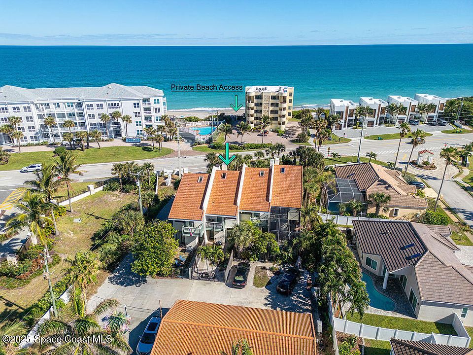 Beautiful Townhouse and an amazing location! This 3BR / 2.5 BA Townhome with 1 car garage is directly across from the beach, with 2nd floor views to the Atlantic. This is one of only 4 townhomes on the large property and has great beach access, just steps away, directly across A1A. The first floor has an high ceilings, crown molding updated kitchen with designer cabinets, granite counters and stainless steel appliances. The breakfast bar leads into an open living/dining room with a peek out to the Atlantic. Head upstairs and into the large 16x14 master with high ceilings. You can also see glimpses of the water or step out onto the private balcony for a better view of the water or a spectacular sunrise. The ensuite is amazing with a spa-like shower, and there's also a generously sized walk-in closet. Across the hall there's a 2nd bedroom, also with ensuite. This bedroom also has high ceilings and you can take in the sunsets off the private balcony. There's also a full sized washer and dryer on the 2nd floor. Head upstairs and there's a loft that serves as a 3rd bedroom, with a nice sized closet. The unit is full of natural light with NEW oversized sliders and windows. One of the best features of the property is the front patio area. The area is great for outdoor dining, lounging and is super-low maintenance! In the evening, the lighting system kicks in and gives the area a resort-like look. You'll have plenty of storage, with closets throughout the unit, and a private 1-car garage. There's also a dedicated parking spot for the unit. Pet friendly HOA,. Seller would consider a sale fully furnished. Easy to show!