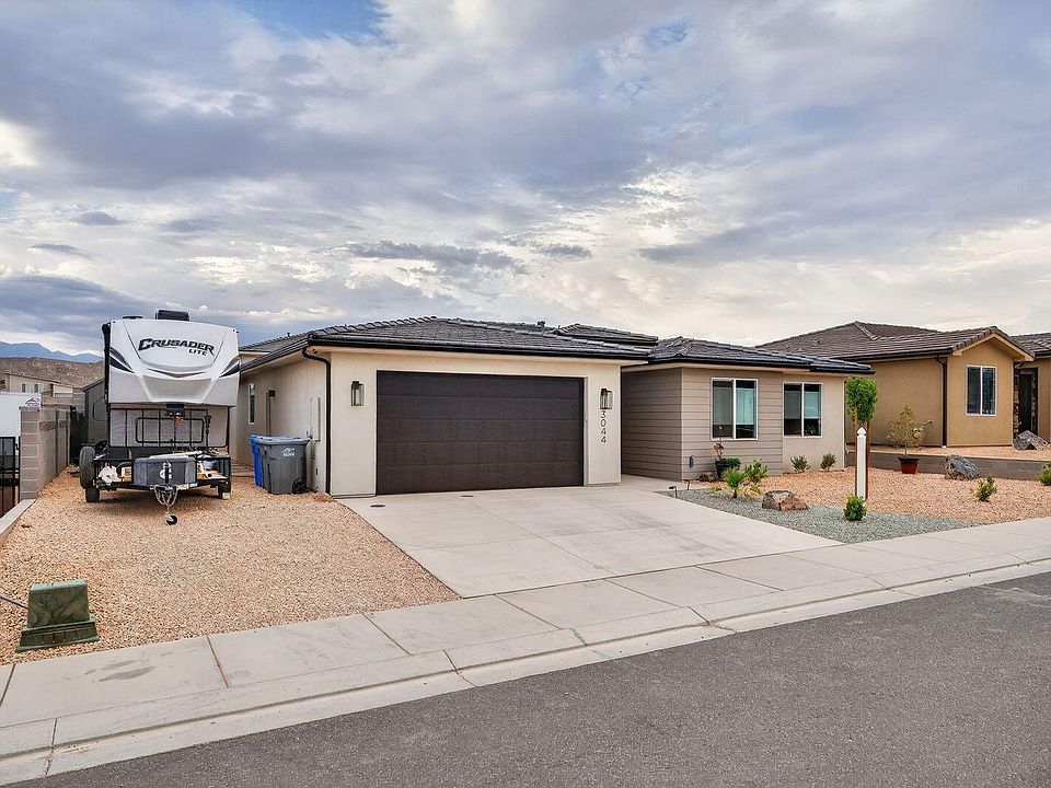 This spacious 4-bedroom, 2-bathroom gem offers hard-to-find features, including: A bright, open-concept living space, a stylish accent wall with a modern fireplace and floating shelves, an inviting kitchen with elegant granite countertops and white cabinetry, RV parking for all your travel and adventure gear, a fully landscaped yard with a brand-new pergola to help you enjoy the Southern Utah sunshine in comfort. Whether you're looking to settle down, vacation in style, or invest in a growing area, this home checks all the boxes. Don't let this rare find slip away - your Hurricane adventure starts here!