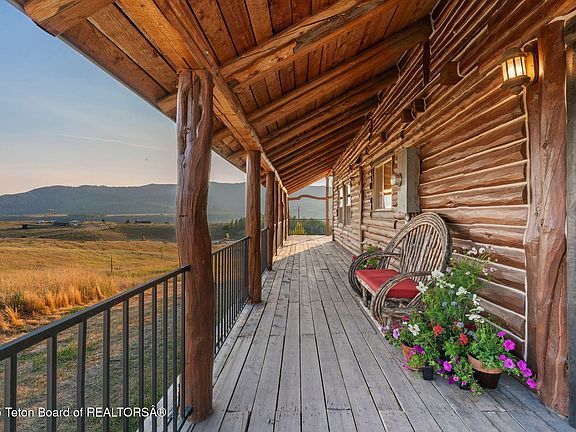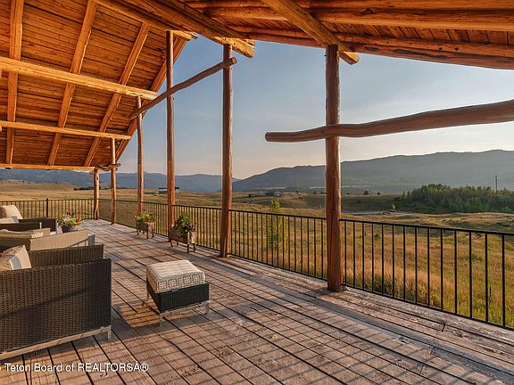Wildhorse Lodge — 13.91 acres with sweeping views of the Gros Ventre & Snake River Range which is all part of the Southern Teton Range. Major remodel in 2023 blends restored hand-hewn logs with modern finishes. 3,600 sq. ft. includes, a spacious kitchen with quartz & butcher block, great room with elk horn chandeliers, and a spa-like primary suite with soaker tub & in-floor heating. Finished walkout lower level with 2 bedrooms, living area, pellet stove, and private entrance. Most furnishings included. Existing footers for garage or outbuilding. A rare opportunity for luxury, privacy, and Wyoming beauty.