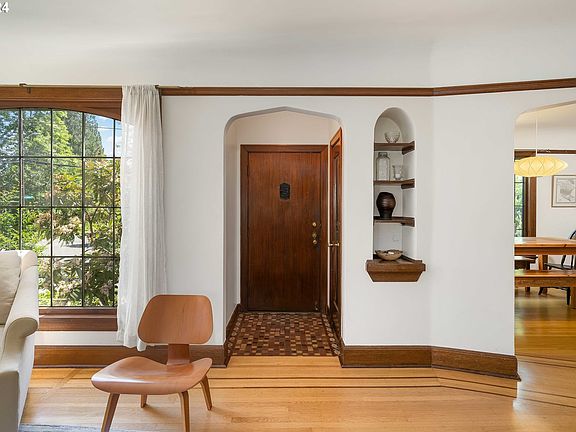 Impeccably renovated over the years with architect-designed kitchen and bath remodels, skim-coated walls, refinished floors, updated mechanicals, a new roof, and chimney repair with a liner. Professionally landscaped front and back yards complete the exterior. This Tudor home exudes perfection, featuring spacious rooms with hardwood floors and intricate inlay designs, coved ceilings, and rich mahogany woodwork. Enhanced by picture moldings, a sunlit nook, and abundant natural light, the home also boasts an oversized 2-car garage. Nestled in the Beaumont-Alameda neighborhood with sought-after schools, this corner lot residence epitomizes privacy and comfort. [Home Energy Score = 1. HES Report at https://rpt.greenbuildingregistry.com/hes/OR10229131]