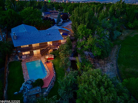 Welcome to 3045 Oreana Drive, a rare find in one of Reno's most cherished neighborhoods. Perfectly positioned within walking distance to a top-rated elementary school, gourmet dining, and boutique shopping, this home offers the lifestyle so many dream of, at a price point rarely seen in this coveted zip code. With over 4,600 sq ft of living space, this 4-bedroom, 3.5-bathroom home is a true unicorn, boasting spacious rooms, incredible storage, and beautiful views from nearly every window. The layout is ideal with the primary suite, kitchen, and laundry all on the main level, plus two oversized garages for all your cars and toys. The home's groovy '70s vibe is making a stylish comeback, with many original design elements still in pristine condition. Whether you embrace the vintage charm or make it your own with modern updates, the potential is endless. Step outside to your private oasis featuring a pool with waterfall and spa, all framed by lush mature trees and unobstructed views of the meadow and seasonal creek. The protected floodplain behind the property ensures your peace, privacy, and views will always remain. Two wood-burning fireplaces, a newer furnace, and an epic downstairs living area make this home as comfortable as it is cool. It's the kind of home where kids can safely ride bikes, explore nature, and grow up with a sense of freedom and fun. Don't miss this opportunity to own a one-of-a-kind property in the heart of Old Southwest Reno.