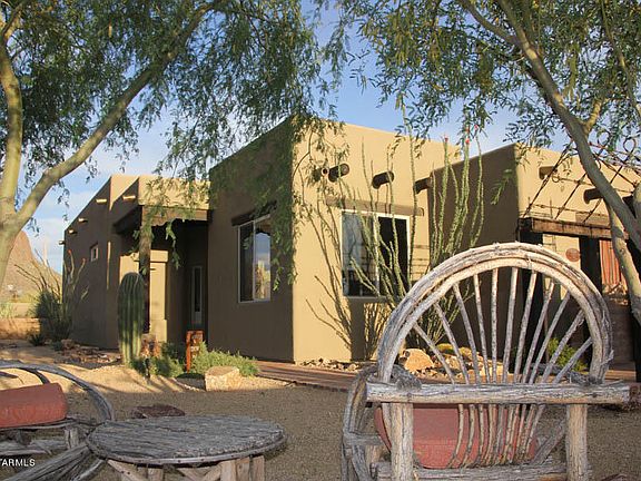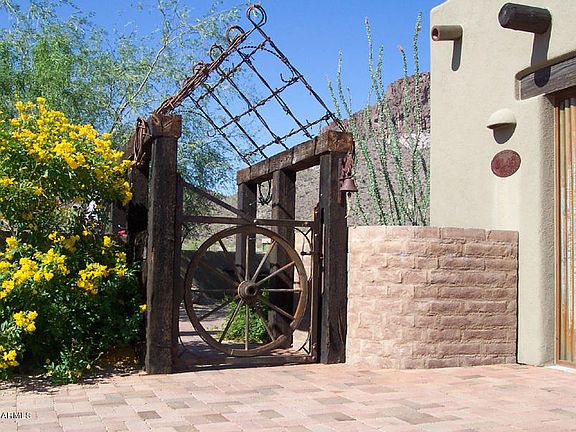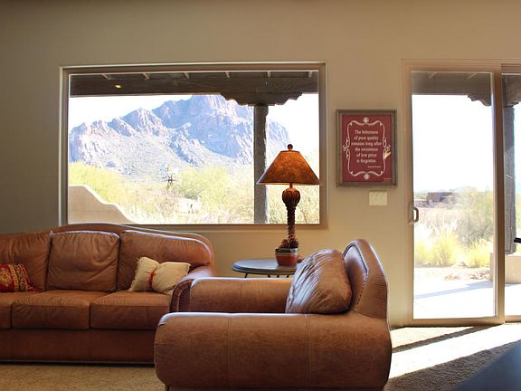 Never been occupied, move-in ready! Beautiful model home built by 4th generation builder known for high quality and thoughtful designs. Beautiful knotty alder kitchen and bath cabinets, 10' ceilings, and appealing combination of tile and carpet floors. Tiled walk-in shower. Oversized great room windows. Unique and extensive landscape features including an arched oversized ''barbed wire'' entry with wagon wheel gate; property walls include stucco, colored slump block and corrugated metal. Backs up to arroyo and common area. Amazing views of Tucson Mountain Park from the east-facing patio and access to 60 miles of non-motorized trails.