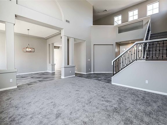 Incredible remodeled Henderson home offering 4 bedrooms and stylish upgrades throughout. Inside, you'll find plush carpet, plank-style tile flooring, and two-toned paint with modern baseboards for a sleek finish. The spacious kitchen showcases white quartz countertops, shaker cabinets, and a breakfast bar that opens to the inviting family room with a cozy fireplace and soaring windows that fill the space with natural light. A striking staircase leads to the primary suite, complete with its own fireplace and sitting area for added comfort. Step outside to a beautifully designed backyard featuring a sparkling pool, creating the perfect setting for relaxation and entertaining.