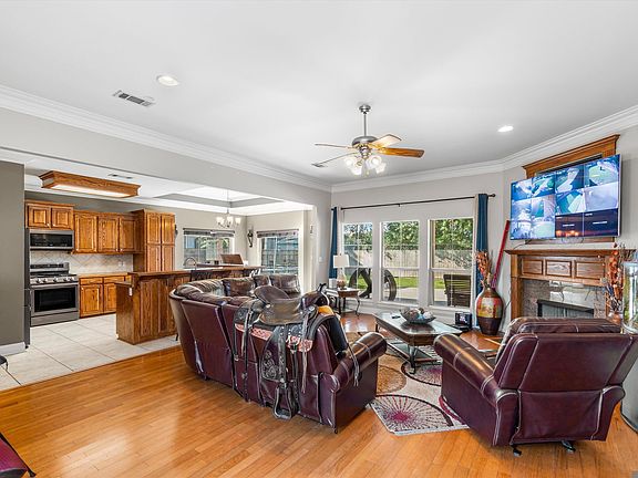 Charming Custom-Built Home in a Peaceful Cul-de-Sac Neighborhood! Welcome home to this beautiful 3-bedroom, 2.5-bath residence offering 1,785 sq. ft. of living space and timeless curb appeal. As you step through the front door, you’ll be greeted by an open-concept floor plan perfect for family gatherings, entertaining guests, or simply relaxing in comfort. The spacious living room features gleaming hardwood floors, abundant natural light, and a cozy fireplace with custom mantle detailing—creating a warm, inviting atmosphere. The kitchen is a chef’s dream, boasting custom oak cabinetry, granite countertops, stainless steel appliances, a gas range, and a large breakfast bar ideal for casual dining or hosting. Enjoy meals in the sunlit dining area surrounded by windows that overlook the backyard—perfect for morning coffee or watching the kids play. The primary suite is a true retreat with elegant tray ceilings, an ensuite bath featuring double vanities, a jetted soaking tub, and a separate walk-in shower. All bedrooms are generously sized, offering comfort and versatility for family, guests, or a home office. Step outside to a fully fenced backyard—ready for outdoor fun, pets, or weekend BBQs. Additional highlights include crown molding throughout, updated fixtures, and a two-car garage. Nestled in a quiet, family-oriented one-street cul-de-sac, this home is conveniently located near shopping, dining, and top-rated schools.