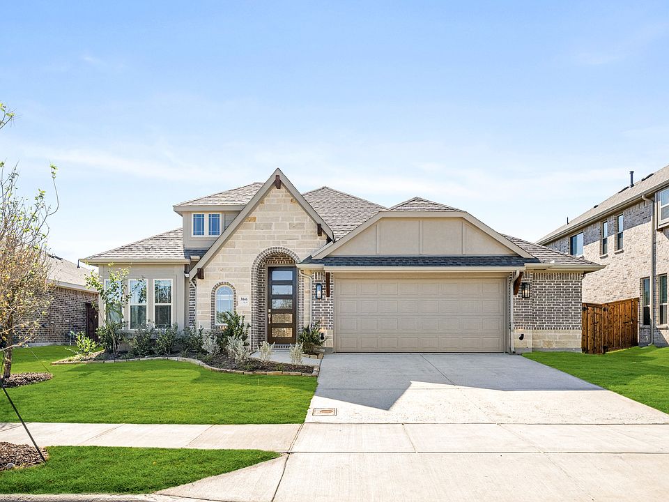 BRAND NEW & NEVER LIVED IN! Completed and Move-In Ready! Bloomfield Homes is building our beloved Cypress II floor plan in Waterscape, an award-winning community full of resort-style amenities! This home is full of upgrades and has the flexibility to change as your life does. Whether it's the charming stone and brick exterior, the bright open-concept Family Room lined with windows, or the stunning RevWood Oak floors throughout, this house makes a standout first impression! Buyers love the Primary Suite and 2 bedrooms on the first floor, while the upstairs bedroom and bathroom offer separation if needed. And for work or play, spaces like the front Study or upstairs Game Room have versatile use. Centered around a large island, the Deluxe Kitchen is equipped with built-in SS appliances, a pot filler over the stove, a wood vent hood, walk-in pantry, and upgraded cabinetry. Contemporary color palette keeps it clean with white Shaker cabinets, brushed nickel fixtures, white granite and quartz countertops, modern white tile selections, and a buff stone-to-ceiling fireplace. There's plenty of room in the Primary Suite to fit a king bed, and the bathroom features an enlarged shower with upgraded tile. Storage can be found throughout - even under the stairs - plus we extended the garage to a 2.5-car for extra space that's always needed! We take care of the outside, too, with full sod, fencing, an irrigation system, gutters, uplights, a gas drop on the back patio, and a custom 8' front door. Bloomfield at Waterscape is ready to help with your dream home - give us a call today!