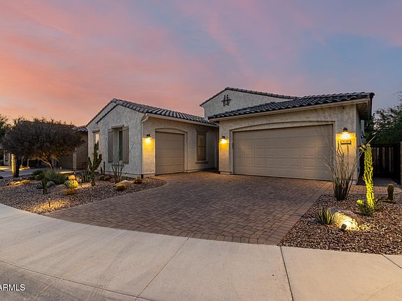 Welcome to refined desert living in this exquisite single-story luxury home, perfectly positioned on a premium corner lot within the private, gated North Phoenix community of Astarea at Sky Crossing. Boasting over 2,800 sq.ft. of meticulously designed living space, this 3-bedroom + oversized office/den (easily converted to a bedroom if needed!), 3.5-bath residence offers upscale comfort and cutting-edge efficiency--including a fully owned 7.2 kW solar system, new whole-house water filtration and reverse osmosis systems, and a sleek new electric fireplace. Behind the custom iron entry door, you'll discover stylish plank tile flooring, new carpeting, modern lighting and a sophisticated ambiance. The impressive kitchen offers a quartz waterfall island, designer backsplash, premium stainless appliances and crisp white cabinetry. The elegant dining area features a custom accent wall. Retreat to the serene primary suite with its spacious bathroom, dual vanities, walk-in shower and a walk-in closet featuring custom cabinetry built-ins. The backyard is a private oasis with an extended covered patio, travertine pavers, artificial turf and lush desert landscaping, with no neighbor to the east and open space to the north. A rare blend of modern elegance and smart upgrades, just minutes from two modern community pools, parks, community center, schools and trails. Only available due to a job relocation. Close to Desert Ridge shopping center, JW Marriott, North Scottsdale, world-class golf, and EZ access to the 51!