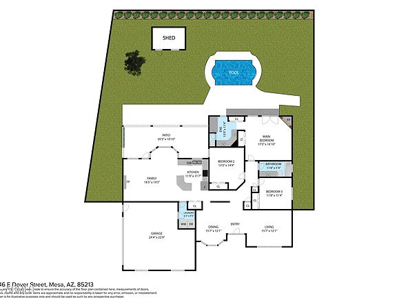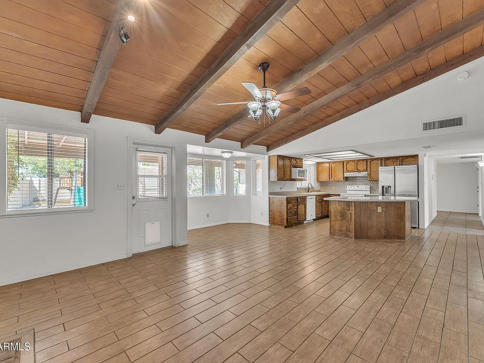 The primary suite offers a private retreat with double vanities, while the hallway bath is generously sized and easily serves the two large secondary bedrooms. Outside, the backyard is built for Arizona living: a huge covered patio provides the perfect hangout spot.