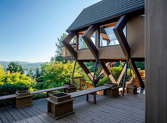 Architecturally unique multi-level home located on Prune Hill. You'll love this beautiful home which features, large windows with stunning views of the Columbia River and Mt. Hood, vaulted ceilings, and a stunning stone fireplace. Master Suite with loft area, Master Bath with soaking tub. Lower level features large exercise room, walk in shower, sauna & entertainment area with bar. Large outdoor space with multi-level deck and Hot Tub.