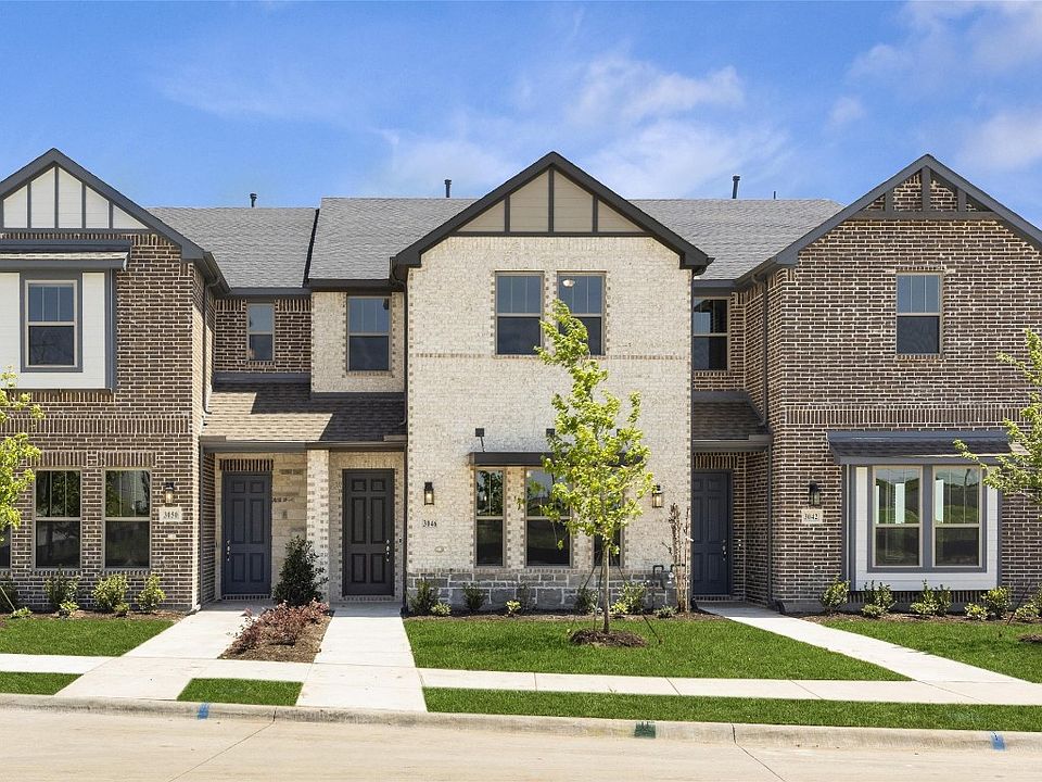MLS# 20302387 - Built by Ashton Woods Homes - Ready Now! ~ New townhome in Sachse near President George Bush Turnpike, just minutes from US-75, 25 minutes from Dallas, and 22 miles from Legacy West. This new townhome is the Columbia design and has a gorgeous kingsize ACME brick and natural stone façade. Kitchen area with satin nickel pendant lighting, white quartz solid surface countertops, 42-inch gray shaker cabinets, built-in microwave and oven, undermount stainless steel single bowl sink, Energy Star Whirlpool stainless steel gas appliances, an eat-in bar top island, gray herringbone ceramic backsplash tile, spot resistant stainless Moen faucet, and a walk-in pantry.. All family bedrooms are on the second floor along with a spacious loft space, and utility room complete with premium ceramic tile flooring. The primary suite is designed with a double sink vanity, shower with ceramic tile and framed glass enclosure, chrome Moen faucets.
