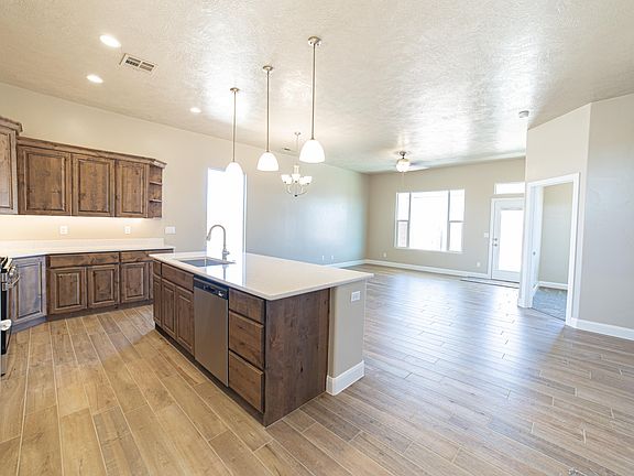 This Brand new home is move-in ready! One of the few single-story townhomes in the area, this home has many high-end features including porcelain wood-grain tile floors, 10' ceilings, fully tiled walk-in shower with a big glass door, stained hardwood cabinets with soft-close hinges and under cabinet lighting, 3 cm thick quartz counter tops throughout, two-toned paint job for extra style, fully-finished garage, covered patio, block wall and fully-landscaped backyard with turf, top-notch plumbing fixtures, and an aesthetically pleasing, energy-efficient stucco and stone exterior with super-durable concrete-tile roof! Plus RV parking! Leaseback program available.