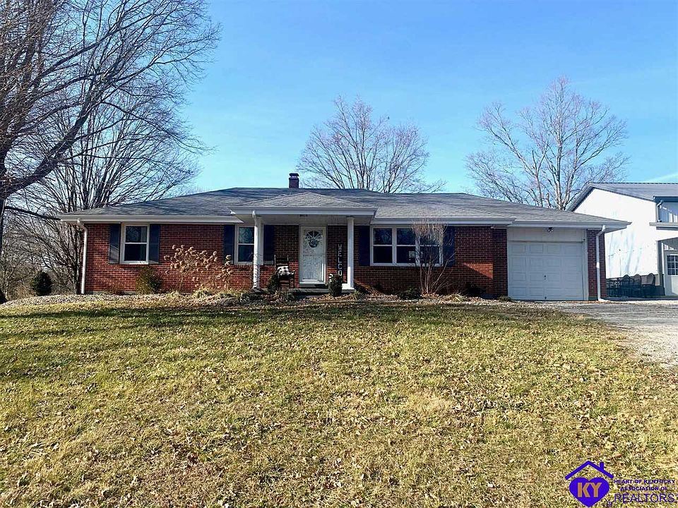 SUCH A LOVELY HOME! So may wonderful newer trends you will love! BIG PLUS~ Pole barn/ Storage building! Feels like home the moment you enter! This has such a peaceful feel of the country and located in the HEART OF KY! Charming updated brick ranch with full size basement. You'll love the spacious living room which gorgeous hardwood floors. Bathroom has custom tile work! The kitchen is so nice , & comes equipped with a range, dishwasher, & refrigerator. You'll enjoy an open floorplan and 1st floor master bedroom and bath as well as two other good sized bedrooms. The basement has a spacious and opportunities for a play room, game room, etc.... The deck off the dining/kitchen area is perfect for entertaining or just a relaxing area for you! This home is fabulous! The final touches and captivating bright open floor plan will definitely impress you. Everything from top to bottom is awesome! Must see to believe.!! Don't miss out on this beautiful home- The new building is so nice for so many purposes! Schedule a private tour today! Data believed correct but not guaranteed. Buyer to verify data prior to offer.