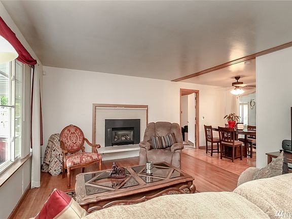 New 50 year composition to be installed prior to closing, Covered walkway with attached carport, Covered deck and patio, repainted interior 2018. 2 gas fireplaces one in bonus room/Sunroom and one in living room. . Garage was left intact but mostly finished(just missing carpet) being used as great room living space but could easily be garage again. Lovely manicured terraced back yard which is fully fenced. RV parking and extra parking available. Hardwood floors. Home is well cared for.