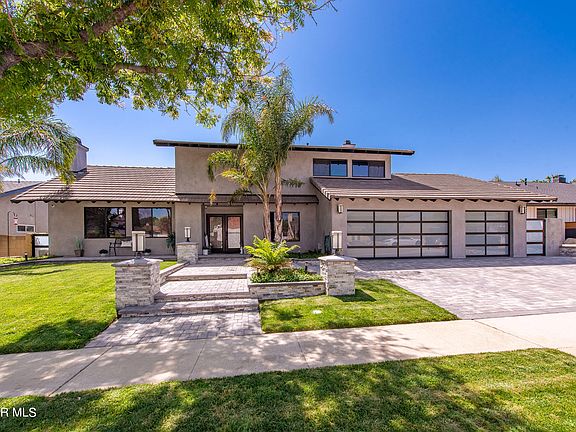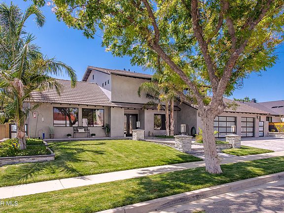 Spectacular Entertainer's Dream home, meticulously remodeled and reimagined with a contemporary flair and the finest finishes and top-notch upgrades; this home will not disappoint. Centrally located, in beautiful Simi Valley, within the Fountainwood community, the home offers 4 bedrooms, plus an office, could be 5th bedroom, 4 bathrooms and a 3-car garage. The stunning curb appeal leads to the dramatic custom wrought iron double door entry. Step inside to find a light and bright open living space with tons of upgrades including plantation shutters, crown molding, custom baseboards, sliding barn doors and shaker doors with opaque glass, wood like tile flooring, an impressive stone fireplace, recessed lighting, surround sound, ceiling fans throughout the home, and a complete smart home control four system. Make your way to the spacious gourmet chef's kitchen which features an abundance of custom cabinetry, granite counters and stone accents, a farmhouse sink, and built in Thermador appliances, including the Professional line refrigerator and freezer, and six burner stainless-steel stove, oven and microwave, hood insert, and wine cooler, plus an oversized island with a sink, breakfast bar and more cabinets. Enjoy a formal dinner in the separate dining area or relax in the family room which boasts a custom fireplace and is equipped with surround sound and two built-in subs and a full-size bar featuring a wet bar and built-in ice maker to keep your margaritas chilled. Through the family room is the lower-level bedroom with a nearby ¾ bath. Upstairs is the luxurious master suite that boasts a five-star hotel style ensuite master bath with dual vanities, a frameless enclosed sizeable shower with dual shower system and steam feature, a wet bar and coffee station with mini fridge for morning coffee or late-night cocktails, plus an oversized walk-in closet with an added bonus storage niche. There are also two spacious secondary bedrooms, one with an ensuite ¾ bath, plus a hall bath with a tub on the upper level. The rear yard boasts an exquisite entertainer's paradise perfect for entertaining and is highlighted by a sparkling heated Pebble Tech pool and spa, a sizeable patio structure, with a cozy fireplace and spacious lounging area, and outdoor kitchen with an oversized bar featuring the Fire Magic brand and built-in barbeque with warming drawer, side burner, microwave, garbage disposal, hot water and is wired for two TVs. The yard has a drought resistant lawn and features Vista Professional landscape lighting found throughout the property, making the space usable any time day or night, rain or shine. All windows, drywall, insulation, electrical, plumbing, gas and water lines, dual air conditioner systems with separate zones, eight security cameras, custom redwood exterior perimeter walls, pool equipment, two tankless water heaters, aluminum garage doors with opaque glass and shaft mount openers, new pavers and concrete and so much more was installed during the remodel. No expense was spared, hurry this one won't last.