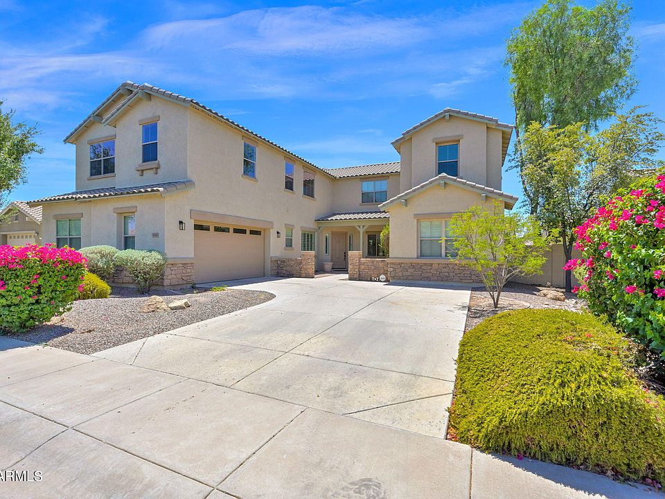 Experience luxury living in Gilbert with plenty of room for everyone! Located in the Carrara Estates community, this beautifully updated former model offers over 4,900 SqFt of thoughtfully designed living space, making it perfect for entertaining and creating lasting memories with family and friends. From the moment you arrive, the home's inviting curb appeal greets you with fresh exterior paint, stacked stone accents, and a paver courtyard entry. Step inside to a bright and inviting floor plan featuring 10-foot ceilings, expansive windows that fill the home with natural light, elegant Versailles pattern travertine floors, and custom baseboards. The open concept layout flows seamlessly from room to room, enhanced by fresh neutral paint and stylish upgraded lighting. The gourmet kitchen offers rich cabinetry, granite countertops, tile backsplash, stainless gas appliances, and a butler's pantry complete with beverage fridge and oversized walk-in pantry. Need extra space for guests, in-laws, or a private office? The attached casita is a perfect option with its own separate entrance.