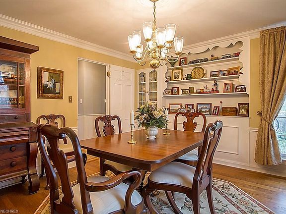Here is your opportunity to live in one of Pepper Pikes most desirable developments! This impeccably maintained and updated Cape Cod is situated in a park like setting with an amazing, newly built 2 car garage with loft area, the exterior of which is finished in weather resistant hardy board...extending the home to a 4 car garage. The home has a lovely flow to the floor plan with 2 large additions giving the home nearly 2400 sq ft of living space. The updated eat in kitchen boasts of wainscot, hardwood floors and Corian counter tops. The beautiful formal dining room is graced with crown molding, wainscot, built in china cabinets & shelving. The original living room still maintains its 1940s charm with a wood burning fireplace, built in cabinets and a dynamic bay window which looks out onto the wooded rear yard. The great room has vaulted beamed ceilings, a floor to ceiling stone wood burning fireplace and a convenient closeted wet bar. You can commune with nature when spending time in the 4 season Adirondack style sun room that leads out to a secluded treed back yard. The 2nd floor has 3 large bedrooms with hardwood floors, built ins and 2 updated bathrooms. (1 1/2 up and 1 down). Along with the loft the second garage has gardening/work shop area. Other updates include newer windows throughout the entire home, Newer roof. updated furnace and A/C. This home is truly a rare find with nothing to do but move in and enjoy! Call right away for your personal tour!