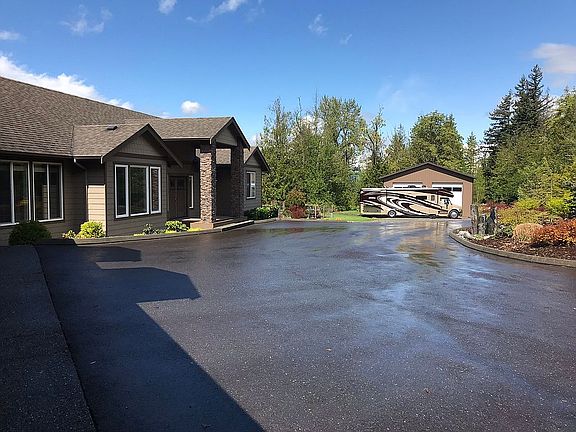 Private, conveniently located, spacious, and well-designed are the words to describe this house. The house is located on 5 wooded acres creating a private, secluded living experience yet is only about a 10-minute drive to Barkley Village. There is plenty of space for toys, gardening, playing soccer and running around without disturbing any neighbors. The interior has a well thought out floor plan to allow enough space for the entire family to have elbow room and is great for entertaining. This type of house does not come available often. This custom home features over 3700 SF of luxurious living all on one level. Built for entertaining, the home features open floor plans and large bedrooms. The kitchen features a huge center island, with stainless appliances, custom cabinets & granite counters. The large recreation room features its own wet bar, granite counters, lots of cabinets, plenty of space for fun and games and is surrounded by six windows that provide abundant natural light and unobstructed views of the forest. Because this room has door access to the bathroom and a large bedroom attached, it has a feel of its own little apartment. The master bedroom, located off the living room, looks out into the backyard and its park-like setting. The wow factor of this room is the spacious walk-in tile shower featuring triple showerheads. It is hard to shower anywhere else without feeling claustrophobic. The other three large bedrooms are on the opposite end of the house down its own hallway. In addition to the spa-like master bathroom, there is a shared bathroom that has double sinks and includes its own urinal. The half bathroom is located in the laundry room away from all other living spaces to give extra privacy. The main living room includes a gas fireplace with a blower to heat the entire main living area. The large deck and patio include access from both the main living room and the recreation room. The patio has a built-in fire pit and a large Jacuzzi hot tub. There is a large 1040 SF 3-car attached garage that includes a dog door to an outside kennel. The home has a huge backyard, a garden space, and a plug for a generator for the house. As if all that listed above was not enough, included on the property is a large 2-stall fun shop that is 36X48 with 14'hx12'w doors. The shop includes a climbing wall to the height of the shop. Great storage for RV and / or boat and other toys. The shop includes an RV outlet. During the winter / rainy days, this insulated shop provides great space for the kids to get out of the house and have some fun yet stay dry. Google Earth has a great overview of the property for your view. House is currently occupied so you must call for a viewing. Due to COVID 19 issues, we will ask you to provide proof of eligibility to purchase a home before making a viewing appointment. Contact Tracy at 360-319-6518 for an immediate viewing appointment.