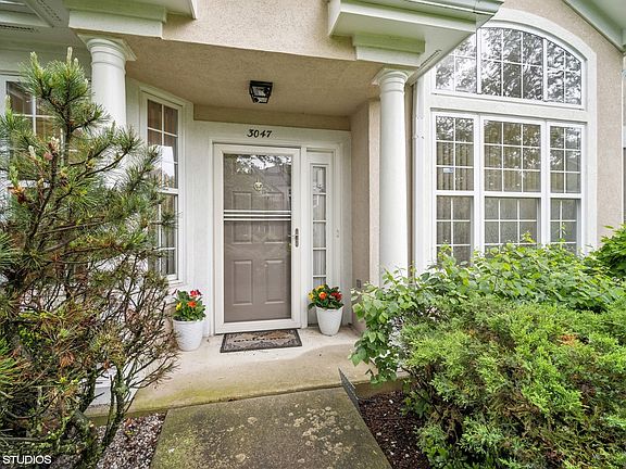 Welcome to one of the best values in the highly desirable Princeton Club-a beautifully maintained, move-in-ready ranch townhome that offers the comfort and privacy of a single-family home, all within a carefree, maintenance-free community. ALL ON ONE LEVEL-NO STAIRS!Step inside through a private entrance into an inviting foyer that opens to a dramatic, sun-drenched great room featuring soaring vaulted ceilings, skylights, and windows on three sides-filling the space with natural light. A cozy gas fireplace adds warmth and charm, making this space perfect for relaxing by the fire.The adjacent dining area makes entertaining effortless. The spacious, well-appointed kitchen offers ample 42" white cabinetry, granite countertops, and a pantry. It opens to a sunny breakfast area that's perfect for morning coffee-or step outside to your private patio and enjoy the serene courtyard views. The luxurious primary suite is a true retreat, featuring double doors, a large walk-in closet with built-in organizers, and an oversized en-suite bath with a soaking tub, separate shower, and double vanity. A third bedroom, currently used as an office, offers flexible space for your needs. Additional highlights include hardwood floors throughout, a full-size laundry room, 2-car garage with pull-down attic storage, and neutral finishes that complement any decor. This unit is ideally situated within the community-quietly tucked away, yet close to The Glen, Park Center, shopping, dining, transportation, and easy access to I-294/I-94 Enjoy resort-style living with access to the community clubhouse and pool. Located in a top-rated school district, this is a rare opportunity to enjoy convenience, comfort, and low-maintenance living in a premier location. Unpack, relax, and start living your best life at Princeton Club!
