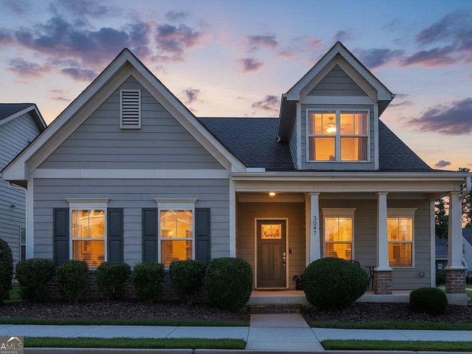 Live the lifestyle you deserve in this stunning craftsman-style home inside Marietta's premier active adult gated community. Designed for comfort, convenience, and connection, this home pairs modern luxury with a vibrant social setting just minutes from the Marietta Square and the Silver Comet Trail. Step inside and be wowed by soaring ceilings, crown molding, and an open-concept design that's perfect for entertaining. The great room features a cozy fireplace and flows seamlessly into the gourmet kitchen, where granite countertops, designer cabinetry, stainless steel appliances, and an oversized island set the stage for gatherings. The main-level owner's suite is a true retreat with wood beam accents, spa-inspired bath, dual granite vanities, oversized shower, and a walk-in closet. A private guest suite with en-suite bath adds comfort and privacy. Upstairs, a versatile flex space, third bedroom, and full bath give you room for guests, hobbies, or a home office. Enjoy the sun porch, two-car garage, and low-maintenance living with lawn care included. Community perks include a clubhouse, outdoor seating areas, guest parking, and year-round social events. Even better, the pool table and accessories are included, and with an acceptable offer, furnishings may remain for a seamless move. This is more than a home, it's an elevated lifestyle in one of Marietta's most sought-after active adult communities.