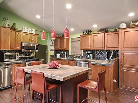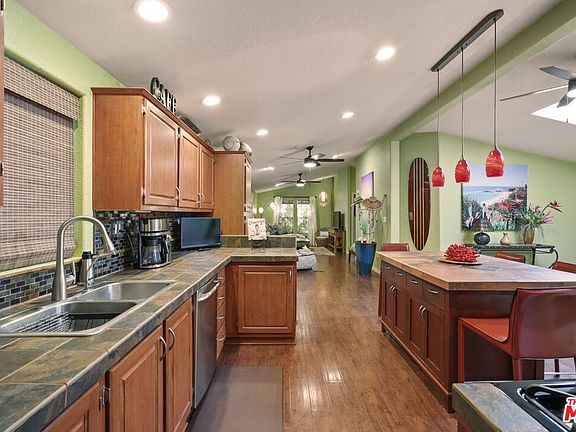 Welcome to your beautifully designed sanctuary nestled in the serene landscapes of the Seminole Springs community. This exquisite home boasts 3 bedrooms, 2 baths and 1,536 square feet of stylish living space, offering a harmonious blend of style and comfort. As you step inside, you'll love the open flow with high ceilings, skylights, and manufactured wood flooring throughout. The custom-built kitchen is a chef's delight, featuring stone tile countertops, eye-catching tile backsplash, and a central island illuminated by stylish pendant lighting. Stainless steel appliances add a touch of modernity, while the living and dining areas offer ample space for relaxing and entertaining.The primary bedroom is a true retreat, complete with French doors that open to your private backyard oasis. The primary bedroom features an ensuite bathroom with dual vessel sinks and elegant porcelain tile flooring, adding a touch of luxury to your daily routine.Step outside to your incredible backyard, which features two decks, a built-in water feature, and a versatile outdoor shed or yoga retreat/art studio equipped with electricity. Mountain views, mature trees and terraced sitting areas create a tranquil setting, complemented by a deck overlooking a creek, where a soft tub jacuzzi awaits for ultimate relaxation. Additional features of the home include recessed lighting, luxury ceiling fans, bamboo window treatments, and Pottery Barn tab curtains throughout. Practical upgrades such as a reverse osmosis drinking water system, tankless water heater, exterior generator transfer switch, and a new 30-year roof in 2024 enhance the home's appeal. With three sheds and covered parking for three cars, this property offers abundant storage and convenience. Embrace the elegance and tranquility of this unique home. Seminole Springs is a resident owned park that is located only 15mins from the Malibu beaches, and 5 mins from the 101 fwy, local shops and restaurants. With a low monthly HOA fee of $760.00 a month that includes: water, sewer, trash, property taxes on the land, and park amenities; year round heated pool/spa, outdoor BBQ area, fitness room, clubhouse, children's playground, billiards room, basketball court, dog park, community garden, and more! Part of the Las Virgenes School District.